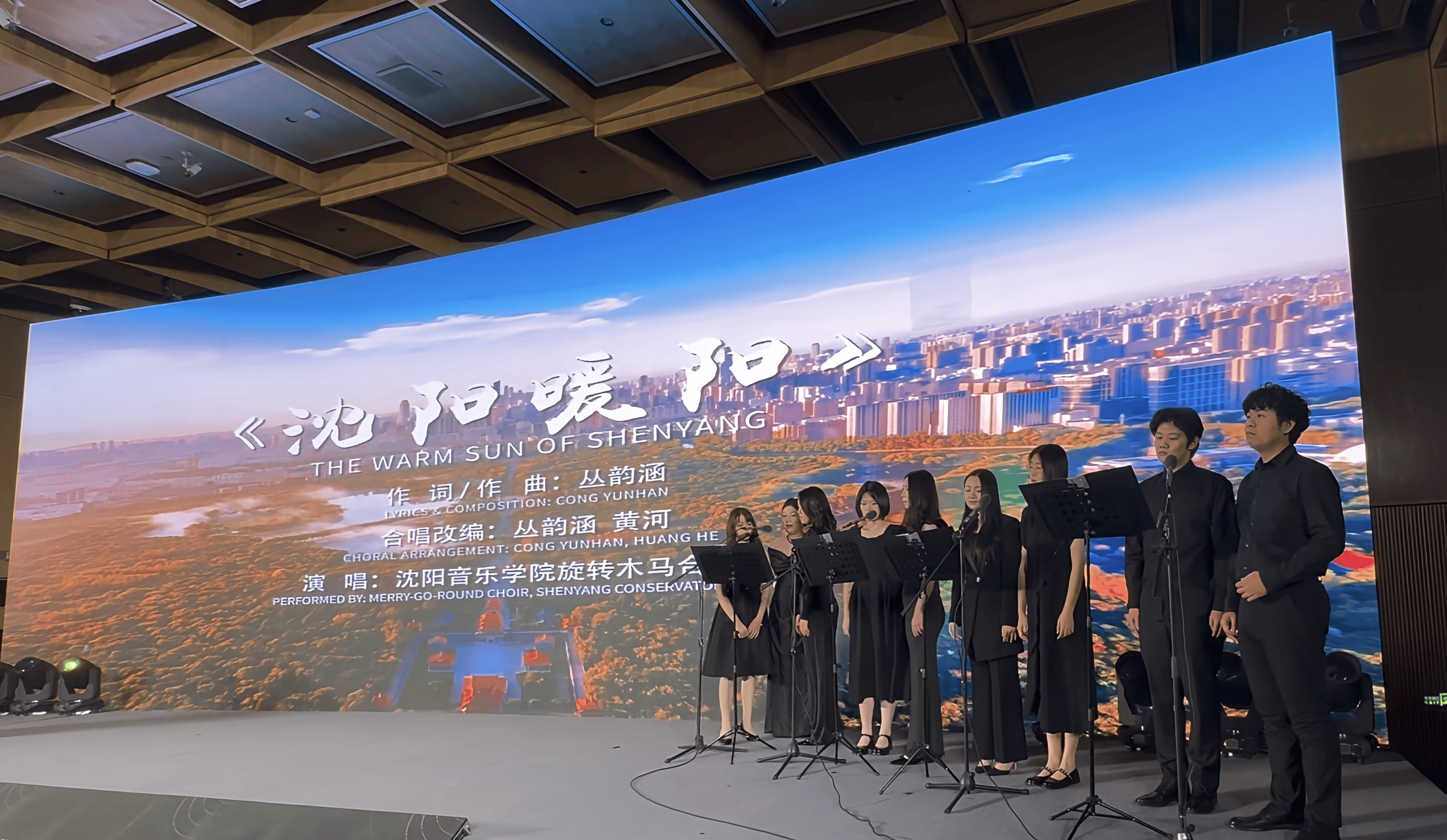 随后,由沈阳音乐学院作曲系旋转木马合唱团倾情呈现的多声部混声合唱作品《沈阳暖阳》,通过音乐旋律与视觉画面的完美交织,生动而丰富地展现了沈阳在城市更新、产业升级以及人文风貌等方面所经历的时代变迁。立体呈现了新时代沈阳推动高质量发展、实现全面振兴的蓬勃气象和壮丽画卷。