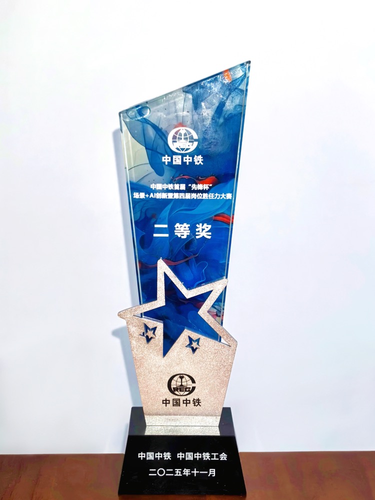 中国中铁首届“先锋杯”场景+AI创新大赛暨第四届岗位胜任力大赛二等奖奖杯